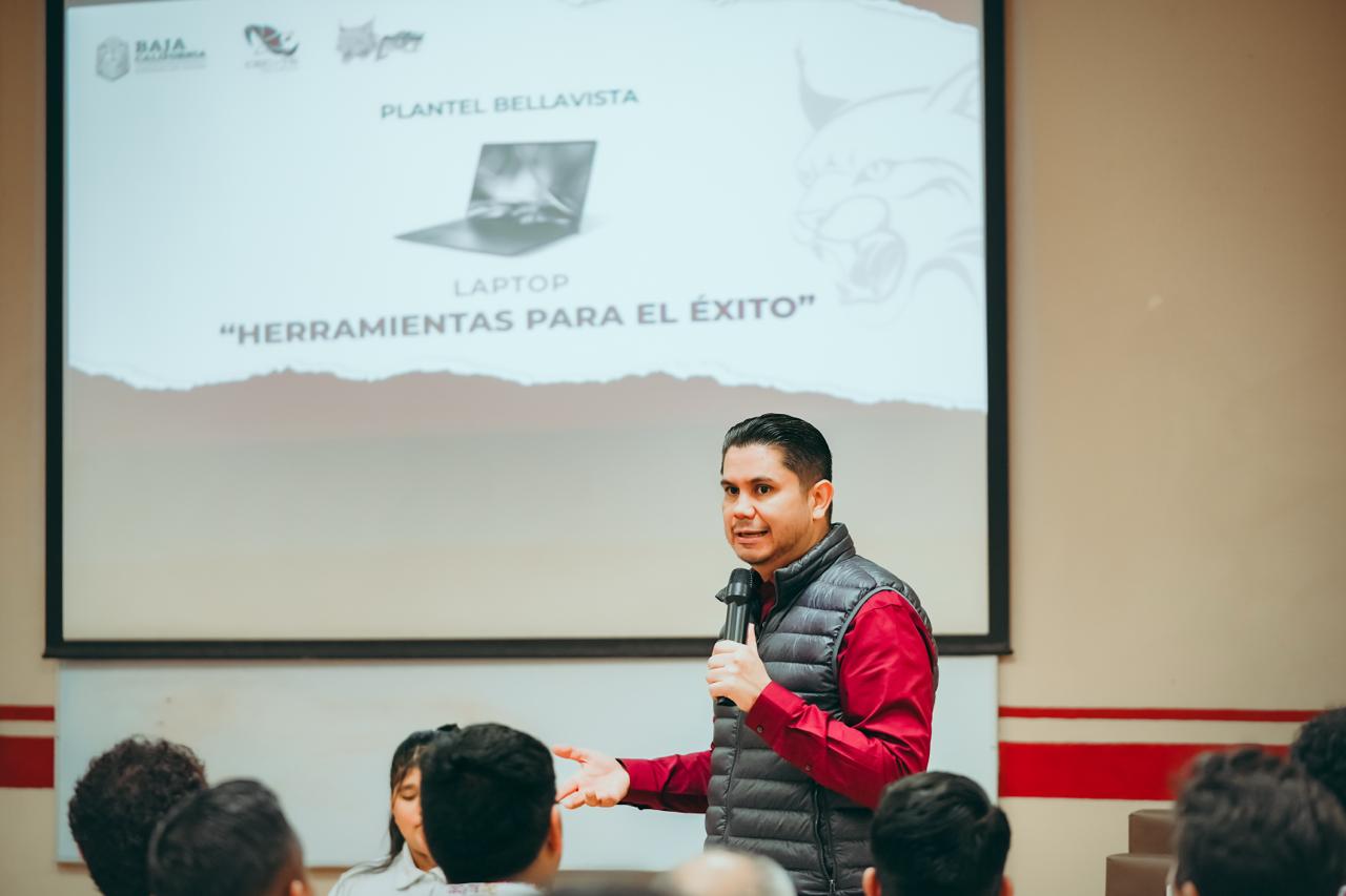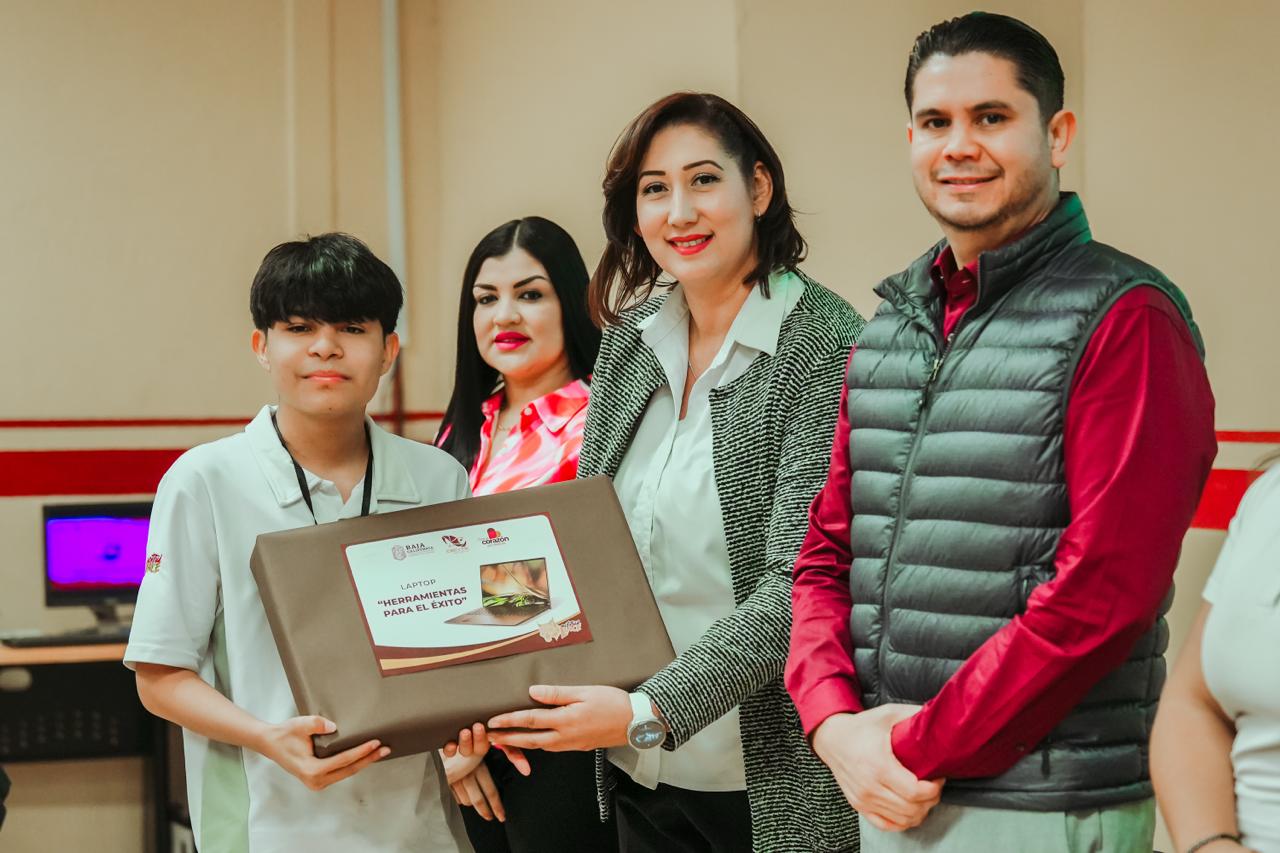 MEXICALI.– Con el objetivo de reconocer el esfuerzo, compromiso y excelencia académica del alumnado, el Colegio de Estudios Científicos y Tecnológicos de Baja California (CECyTE BC) realizó la entrega de las Becas “Herramientas para el Éxito”, un apoyo que consiste en la dotación de laptops para estudiantes destacados de diversos planteles del Colegio.