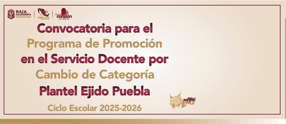 Convocatoria para el Programa de Promoción en el Servicio Docente por cambio de Categoría , Plantel Ejido Puebla, Ciclo escolar 2025-2026