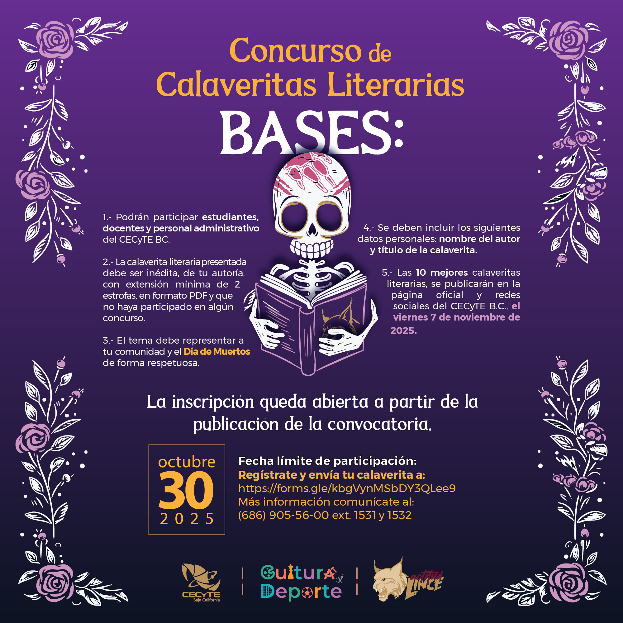 ¡Participa en el Concurso de Calaveritas! Te invitamos a registrar tu calaverita tienes hasta el 30 de octubre. Consulta las bases aquí. ¡Demuestra tu creatividad!