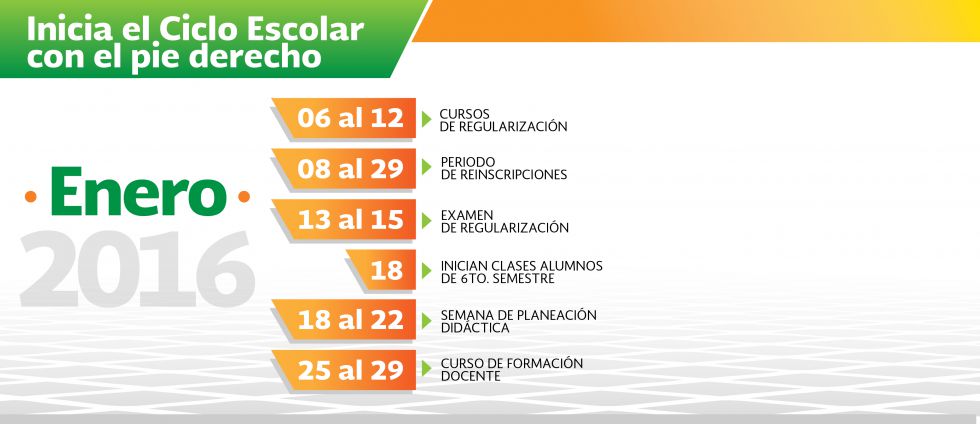 Aquí les presentamos las fechas más importantes referentes a la actividad académica dentro de su plantel durante el mes de enero. ¡Que tenga...