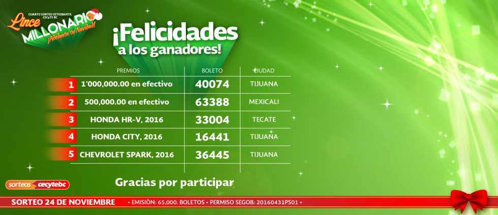 El CECyTE BC, informa que el próximo 24 de noviembre se realizará el 4to Sorteo Estudiantil “Lince Millonario”, por lo que se encuentran e...
