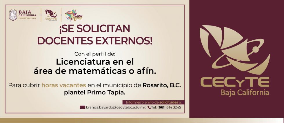 ¡Docentes de Tijuana! Les invitamos a formar parte de la #FamiliaCECyTE cubriendo horas vacantes en el plantel Villa del Sol de Tijuana Consulta aquí...