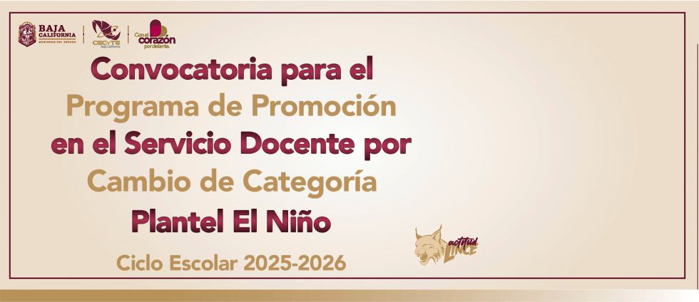 Convocatoria para el Programa de Promoción en el Servicio Docente por cambio de Categoría , Plantel El Niño, Ciclo escolar 2025-2026